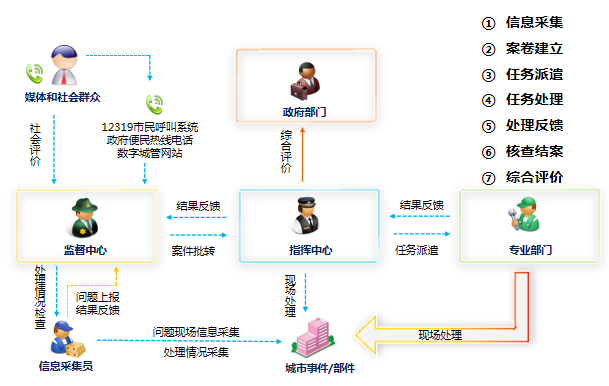 智慧城管系統(tǒng)利用萬(wàn)米單元網(wǎng)格管理法和城市部件管理法相結(jié)合的方式,整合應(yīng)用多項(xiàng)數(shù)字城市技術(shù),利用智能移動(dòng)終端,創(chuàng)新信息實(shí)時(shí)采集傳輸?shù)氖侄?,?chuàng)建城市管理監(jiān)督和執(zhí)行相互分離協(xié)作的管理體制。