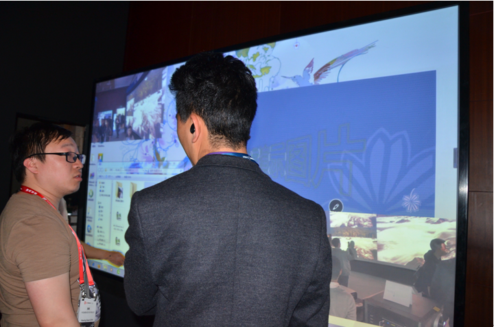 圖4 120吋激光全景多點(diǎn)觸控屏也獲得參觀者的一致好評