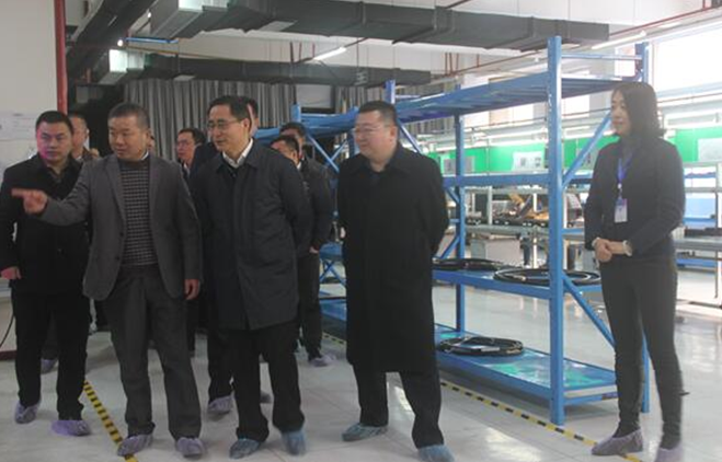 圖4 綿陽市彭宇行書記(前排左三)、副市長元方(右二)等領(lǐng)導(dǎo)參觀中視迪威生產(chǎn)線