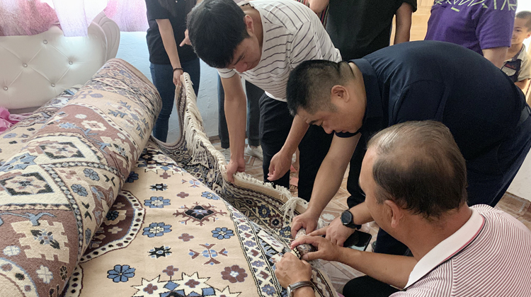 隨后駐村工作隊(duì)帶領(lǐng)大家來到瓊庫爾艾日克村地毯廠參觀并詳細(xì)講述制作地毯的工藝以及地毯廠的運(yùn)營模式。我司副總裁表示:手工羊毛地毯品質(zhì)優(yōu)良,應(yīng)發(fā)揮自身企業(yè)的優(yōu)勢,幫扶地毯廠搭建產(chǎn)地直供的銷路平臺,將和田地區(qū)的好產(chǎn)品輸送到全國甚至出口。