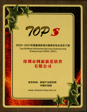 熱烈祝賀深圳市網(wǎng)新新思軟件有限公司榮獲2020-2021年度“中國(guó)最具影響力服務(wù)外包企業(yè)五...